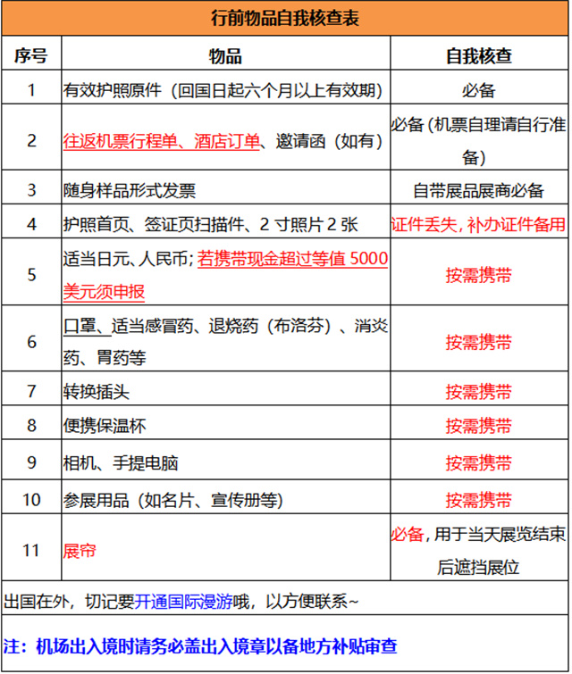 3.若自行攜帶樣品,請務必用行李箱裝運或折疊小推車,方便托運、過關,以及機場、展館的進出,并攜帶形式發(fā)票。